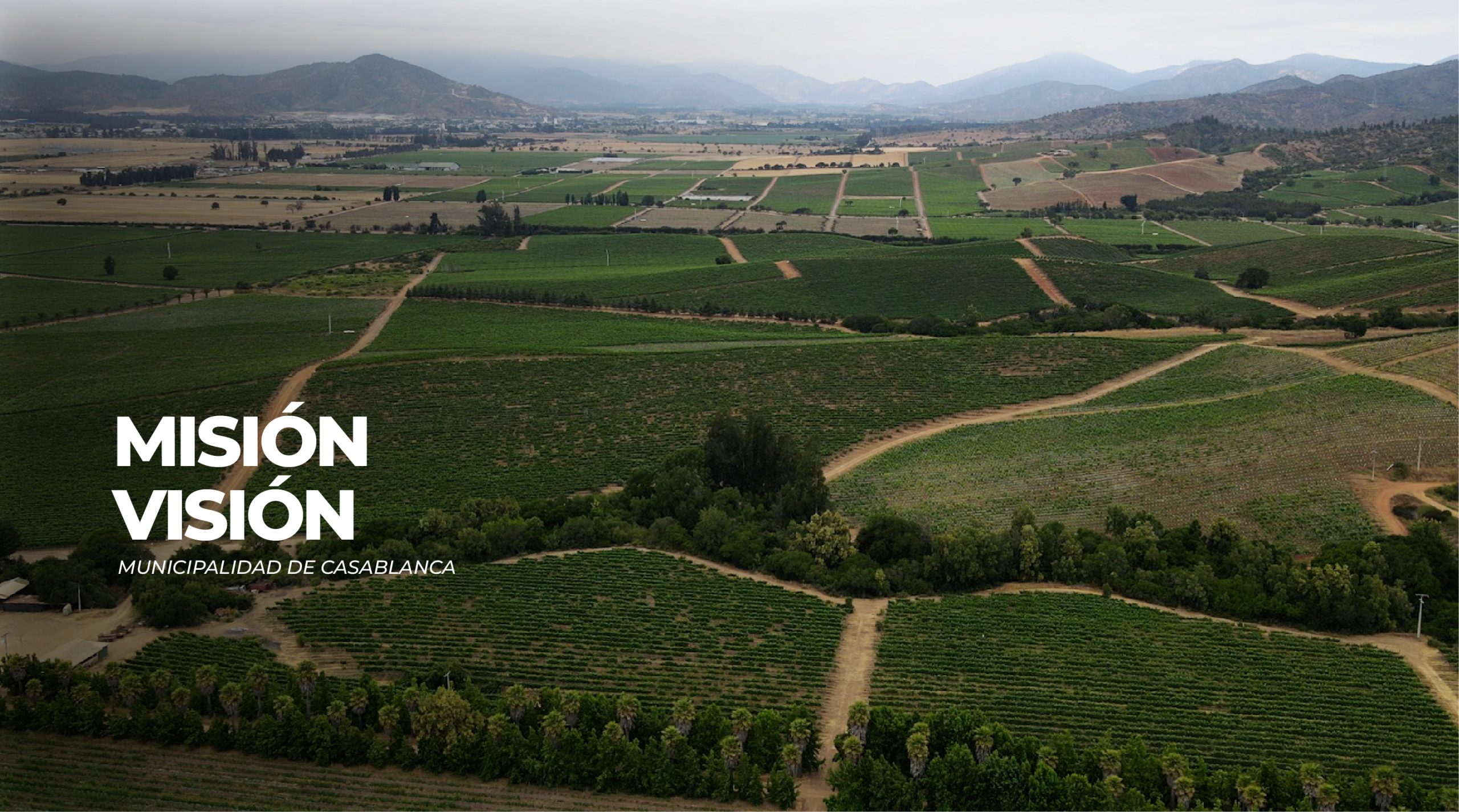 “Ser una comuna que valora su identidad, que es participativa, inclusiva, integrada social y territorialmente en sus zonas urbanas, rurales y costeras; donde se propicia la vida tranquila, segura y en armonía con los ecosistemas naturales. Casablanca promueve su desarrollo económico, realzando y preservando su patrimonio cultural, histórico, natural y construido; procura la sostenibilidad de sus actividades productivas y del turismo, dando relevancia al hecho de ser parte de la Reserva de la Biósfera “La Campana-Peñuelas”.